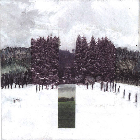 Die Schichten des Waldes, dazwischen, mitten im Winter, eine Schneise des Sommers, das Anderswo einer möglichen Landschaft, die sich vom Schnee getrennt hat. Vielleicht, daß die Hoffnung sich einmischt, wie früher in einer Gegend, wo man nicht weggehen, nicht hineingehen konnte, gleich welche Jahreszeit war. Der Zaunrest, der älteste Zeuge, kann nichts mehr verhindern.